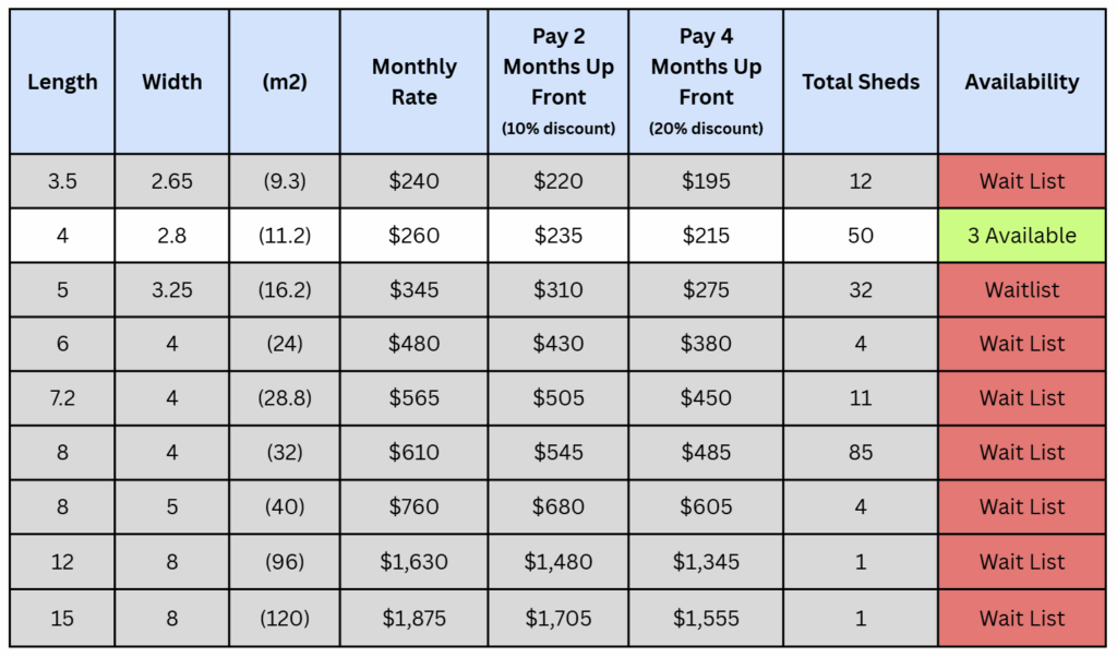 Our wide driveways means it’s easy to reverse into your shed, we have state of the art security and we offer the best value for money per square metre.
