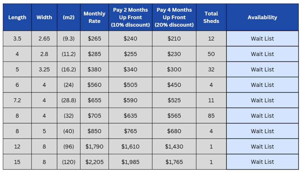 Our wide driveways means it’s easy to reverse into your shed, we have state of the art security and we offer the best value for money per square metre.